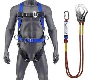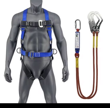 Système de protection individuelle contre les chutes :UN HARNAIS NF361, UN SYSTEME DE LIAISON CONTIENT UN ABSORBEUR D'ENRGIE NF EN 355, UN DISPOSITIF D'ANCRAGE NF EN 795